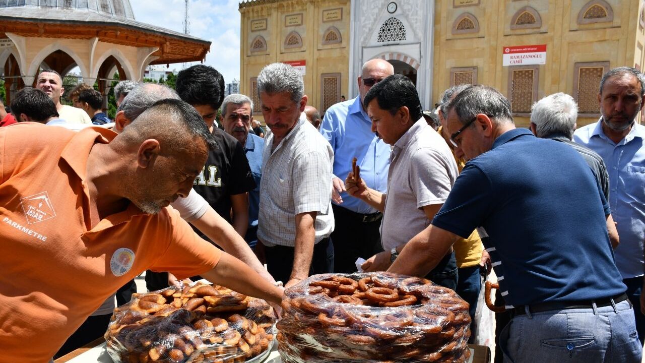 Merkez Çukurova ilçesi Turgut Özal Bulvarı'nda hizmet veren tatlı işletmesinin sahibi Kasım Yergin, İsrail'in Filistin'e saldırıları sonucunda hayatını kaybeden Gazzelilerin hayrına Ramazanoğlu Camisi önünde tatlı dağıttı.