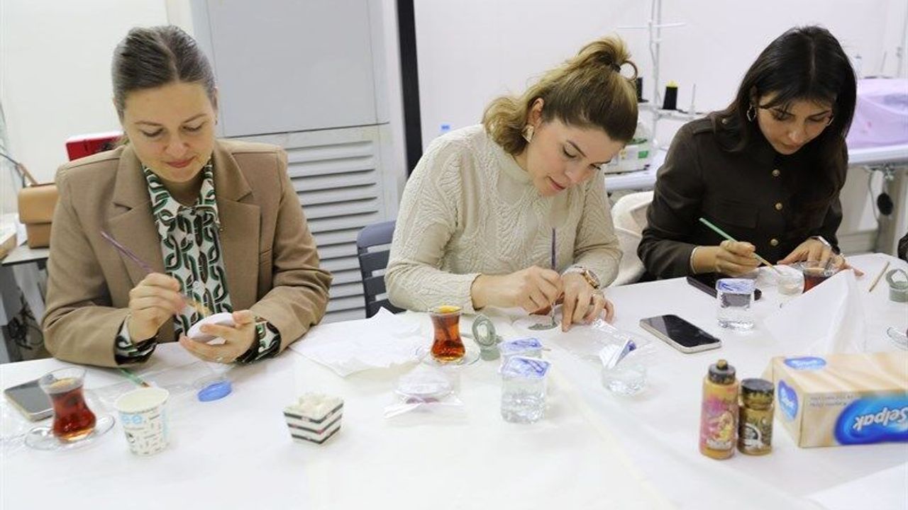İftarın ardından yapılan Ramazan temalı obje boyama atölyesinde kursiyerler hünerlerini sergileyerek birbirinden güzel ve özenli çalışmalar ortaya koydu.