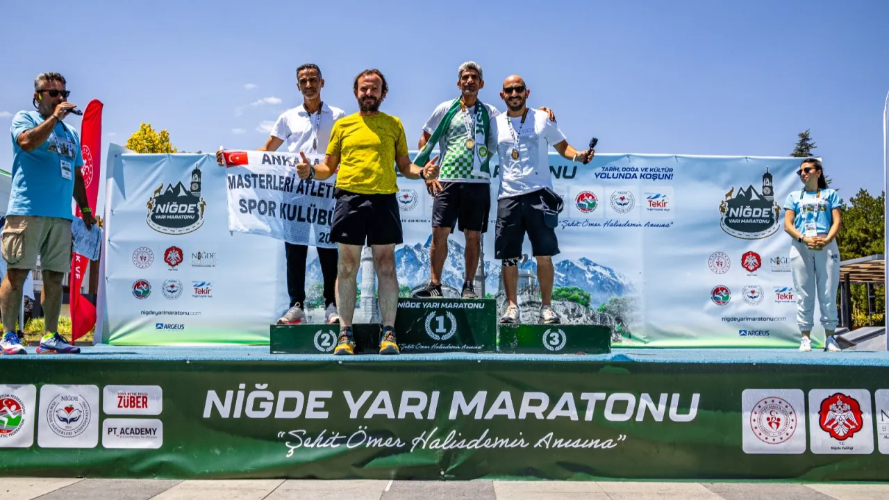Manisa Büyükşehir Belediyespor Kulübü atletlerinden Ahmet Bayram, bu yıl ilk kez düzenlenen Niğde Uluslararası Yarı Maratonu’nda 10 kilometrelik parkuru 36 dakika 58 saniyede tamamlayarak, altın madalya kazandı.MANİSA (İGFA) - Manisa Büyükşehir Belediyespor Kulübü’nün başarılı atletlerinden Ahmet Bayram, 1’inci Niğde Uluslararası Yarı Maratonu’na katıldı. 500 kişinin yer aldığı 10 kilometrelik yol koşusunda Bayram, 36 dakika 58 saniyelik derecesiyle 45-49 yaş grubu arasında altın madalyaya uzandı. Kendi yaş grubunda kürsünün en üst basamağında yer alan Bayram, genel klasmanda ise 6’ncı oldu.