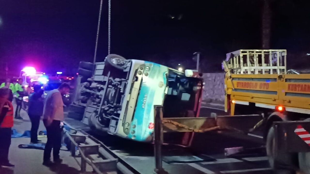 ANTALYA (AA) - TFF 3. Lig ekiplerinden Armoni Alanya Kestelspor'un takım midibüsünün deplasman dönüşünde devrilmesi sonucu 13 futbolcu, teknik direktör ile yardımcısı yaralandı.