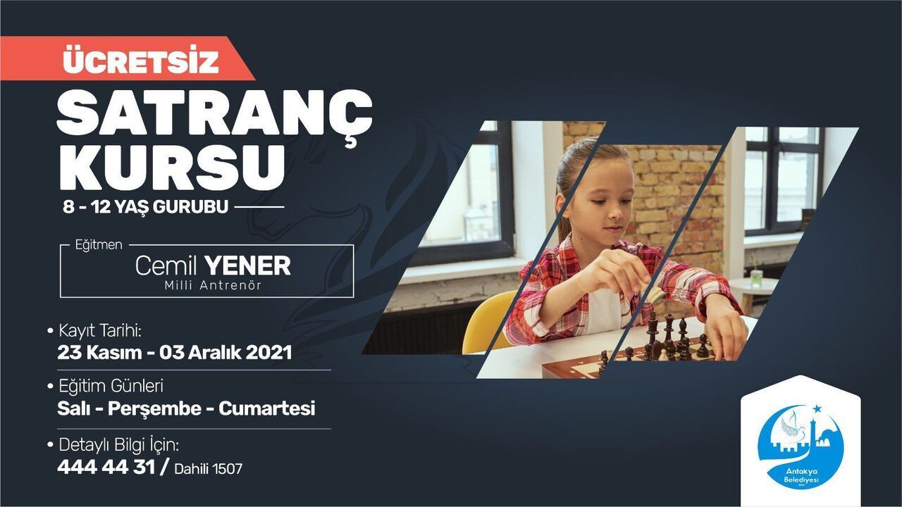 7 Aralık Salı günü ilk derslerin verilmeye başlanacağı satranç kursu hakkında verilen bilgilere göre: "Antakya Belediyesi tarafından açılan ücretsiz satranç kursu, haftanın 3 günü Salı, Perşembe ve Cumartesi günleri yapılacak. Satranç çocuklarda motivasyonu yükselten, davranışların düzelmesine yardımcı olan, özgüveni ve katılımcılığı artıran kolay öğrenilen ve her yaşa hitap eden bir spordur. Satrancın en büyük avantajı çocukların zekalarını ve becerilerini geliştirirken keyifli vakit geçirmelerini de sağlamasıdır." denildi.