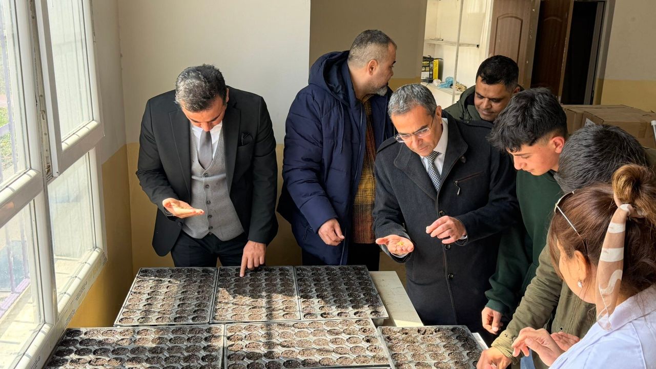 Gerçekleştirilen ziyarette okulda yürütülen tarımsal faaliyetler yerinde incelenirken, öğretmen ve öğrencilerle de istişarelerde bulunuldu.