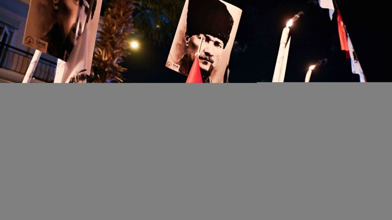 Muratpaşa Belediyesi tarafından organize edilen yürüyüşte, ellerinde meşaleler, Türk bayrakları ve Atatürk'ün fotoğraflarını taşıyan vatandaşlar Muratpaşa Atatürk Kent Meydanı'nda toplandı.