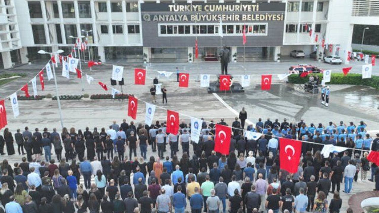 Gazi Mustafa Kemal Atatürk’ün vefatının 85’inci yıl dönümünde Antalya Büyükşehir Belediyesi Hizmet Binası önünde tören düzenlendi. Anma törenine Büyükşehir Belediyesi Genel Sekreteri Cansel Tuncer, Genel Sekreter Yardımcıları, daire başkanları ve belediye çalışanları katıldı.