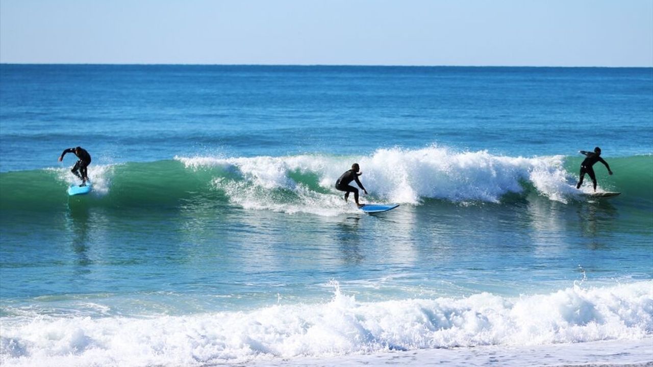 Burada yaklaşık 6 saat vakit geçiren sörfçüler, dalgalı denizin keyfini çıkardı.