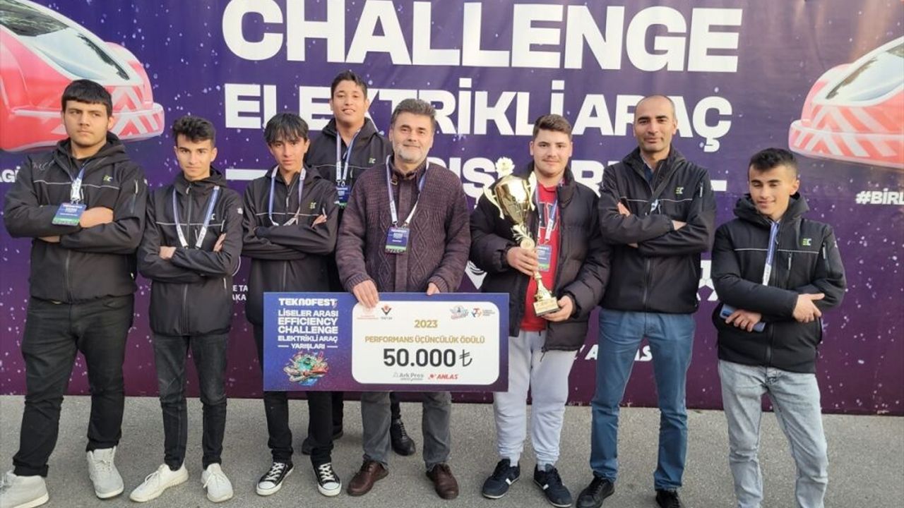 Öğrenciler tarafından hazırlanan elektrikli araç, Kocaeli'nin Gebze ilçesindeki yarışlarda 1032 puanla Türkiye üçüncülüğü elde ederek 50 bin liralık ödülün sahibi oldu.