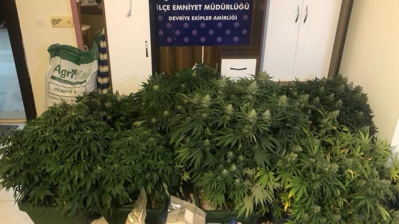 Belirlenen adrese yapılan baskında, yaklaşık 1 kilogram keten tohumu, 140 kök kenevir, bir miktar esrar, 4 hassas terazi, 6 çadır, 22 nemlendirici, 6 konvektör, 6 klima, 3 ısı ölçer ve 8 bitki yetiştirme lambası ele geçirildi.