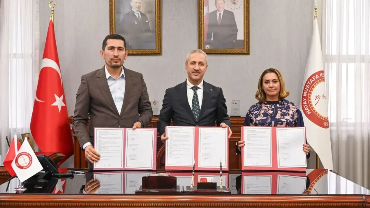 Hatay’da çevresel sürdürülebilirlik ve su kaynaklarının korunmasına yönelik önemli bir adım atıldı. Asi Nehri ve Kırıkhan Gölbaşı Gölü’nde yayılım gösteren su sümbüllerinin değerlendirilmesi ve su ekosistemlerinin rehabilitasyonu amacıyla hazırlanan Bilimsel ve Teknik İş Birliği Protokolü, Hatay Mustafa Kemal Üniversitesi (HMKÜ), Hatay Büyükşehir Belediyesi (HBB) ve Türkiye Sürdürülebilir İnsani Yardım ve Eğitim Vakfı (TÜRSİYEV) arasında imzalandı.