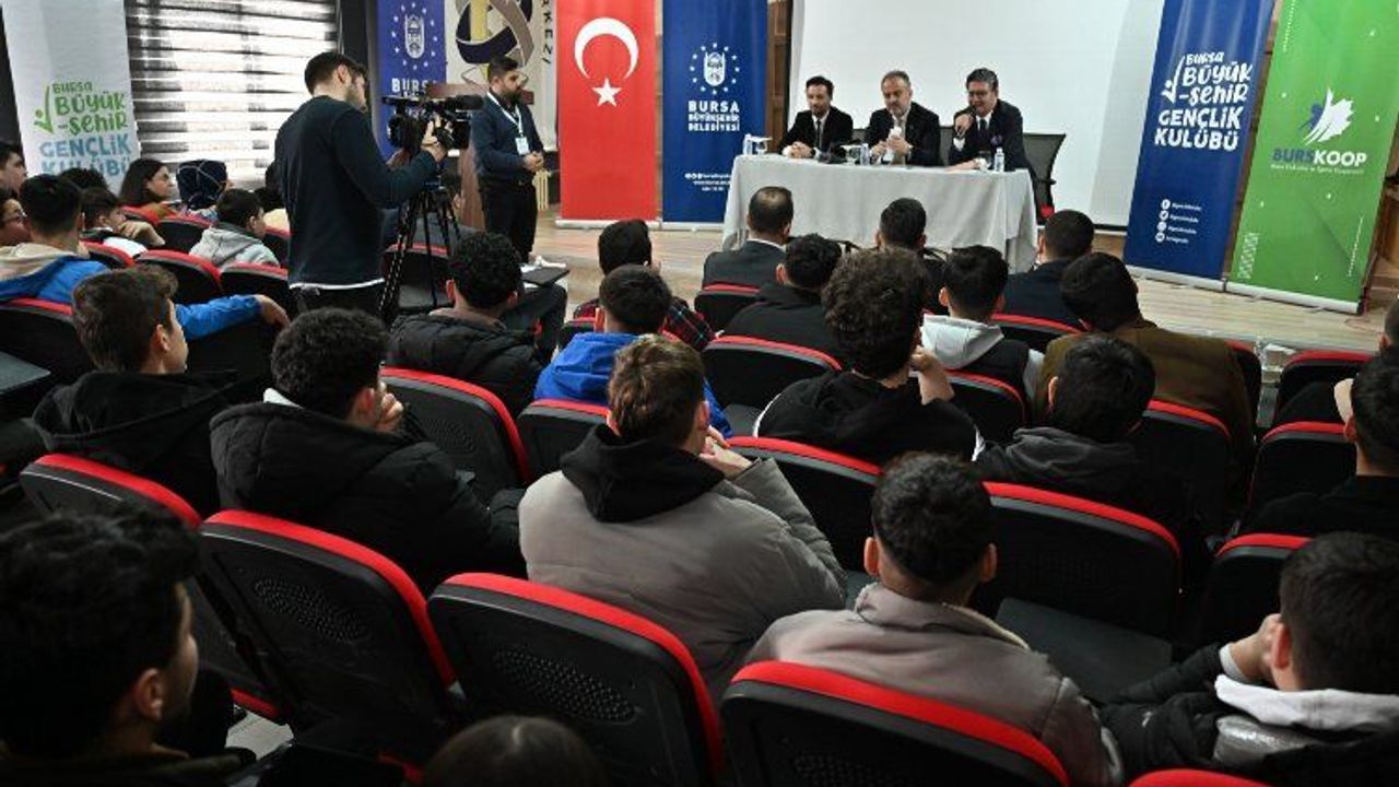 Nilüfer İlçe Milli Eğitim Müdürü Mustafa Muharrem Tüfekçi ile birlikte konferans salonunda öğrencilerle buluşan Başkan Aktaş, hayata dair tecrübelerini gençlerle paylaştı.