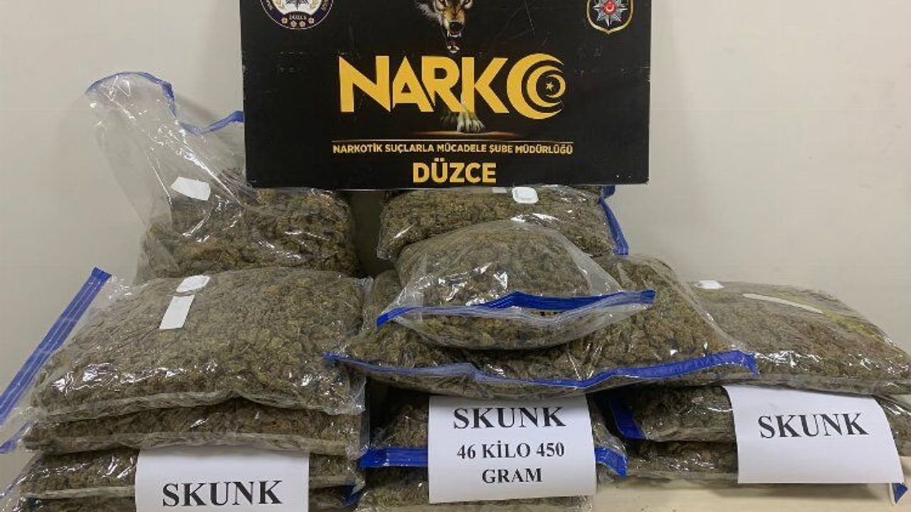 Anadolu Otoyolu'nun Düzce kesiminde durdurulan bir otomobilde 46 kilo 450 gram uyuşturucu madde ele geçirildi, araçtaki 3 kişi gözaltına alındı.Sefer DEMİR / DÜZCE (İGFA) - Cumhuriyet Başsavcılığınca yürütülen soruşturma kapsamında İl Emniyet Müdürlüğü Narkotik Suçlarla Mücadele Şubesi ekipleri, Anadolu Otoyolu'nun Düzce kesiminde Diyarbakır'dan İstanbul'a gitmekte olan durumundan şüphelenilen 21 plakalı kamyoneti durdurdu.