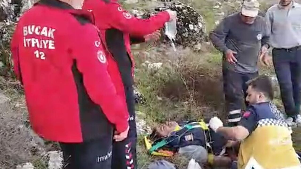 Sedyeyle bulunduğu bölgeden indirilerek ambulansa alınan Bedir, Bucak Devlet Hastanesi'ne kaldırıldı.