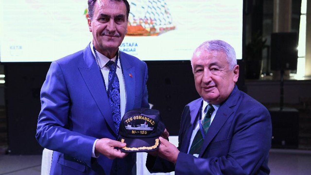 Emekli Oramiral Muzaffer Metin Ataç, günün anısına Başkan Dündar’a TCG Osmangazi (NL-125) çıkarma gemisinin şapkasını hediye etti.