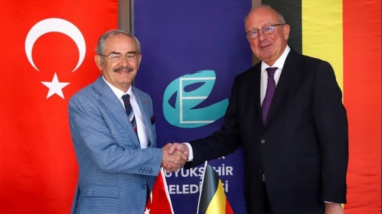 Belçika’nın Ankara Büyükelçisi Paul Huynen, Eskişehir Büyükşehir Belediye Başkanı Prof. Dr. Yılmaz Büyükerşen’i ziyaret etti.ESKİŞEHİR (İGFA) - Başkan Büyükerşen, bir dizi temasta bulunmak üzere Eskişehir’e gelen Belçika’nın Ankara Büyükelçisi Paul Huynen ve Ekonomiden Sorumlu Başkatibi Gino Brunswijck’yi makamında ağırladı.