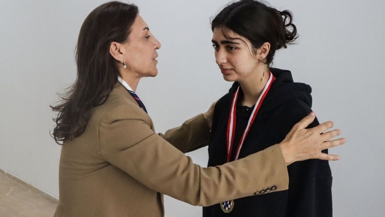 MERSİN (AA) - MUSTAFA ÜNAL UYSAL/ALEYNA COŞKUN - Kahramanmaraş merkezli 6 Şubat'taki depremlerde Hatay'da evlerinin yıkılması sonucu bu yıl kazandığı kupa ve madalyası enkaz altında kalan satranç şampiyonu Hena Karadaş'a ödüllerinin yenileri Mersin'de verildi.