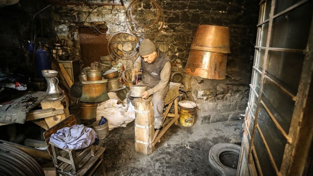 KAHRAMANMARAŞ (AA) - ALİ RIZA AKKIR / ALİ BALLI - 6 Şubat'taki depremlerin merkez üssü Kahramanmaraş'ta enkaz altında kalarak hayatını kaybeden ustasından emanet kalan bakırcılık mesleğini yaşatan 49 yaşındaki Sedat Büyükçıkrıkçı'nın iş yerinden çekiç sesleri yükselmeye devam ediyor.