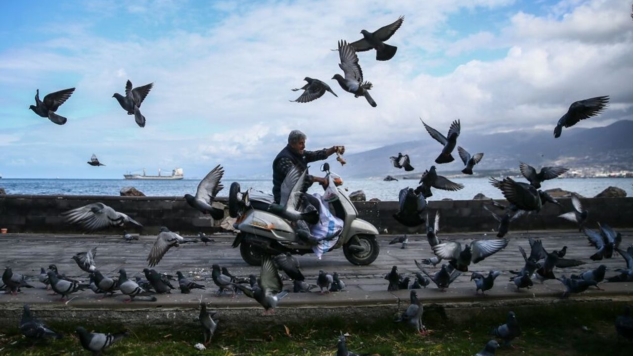 "Her gün buğday, ekmek getiriyorum. Besliyorum onları. Hayvanlar aç. Motosikleti durdurunca güvercinlere 'Gel gel' diyorum hemen geliyorlar. Görenler 'Bunlar senin mi?' diyor, 'Yok ben amcasıyım' diyorum. Depremi biz de yaşadık ama Allah'a çok şükür evime bir şey olmadı. Belki de bunların sayesinde. Hayvanlara baktın mı Allah da size bakar."