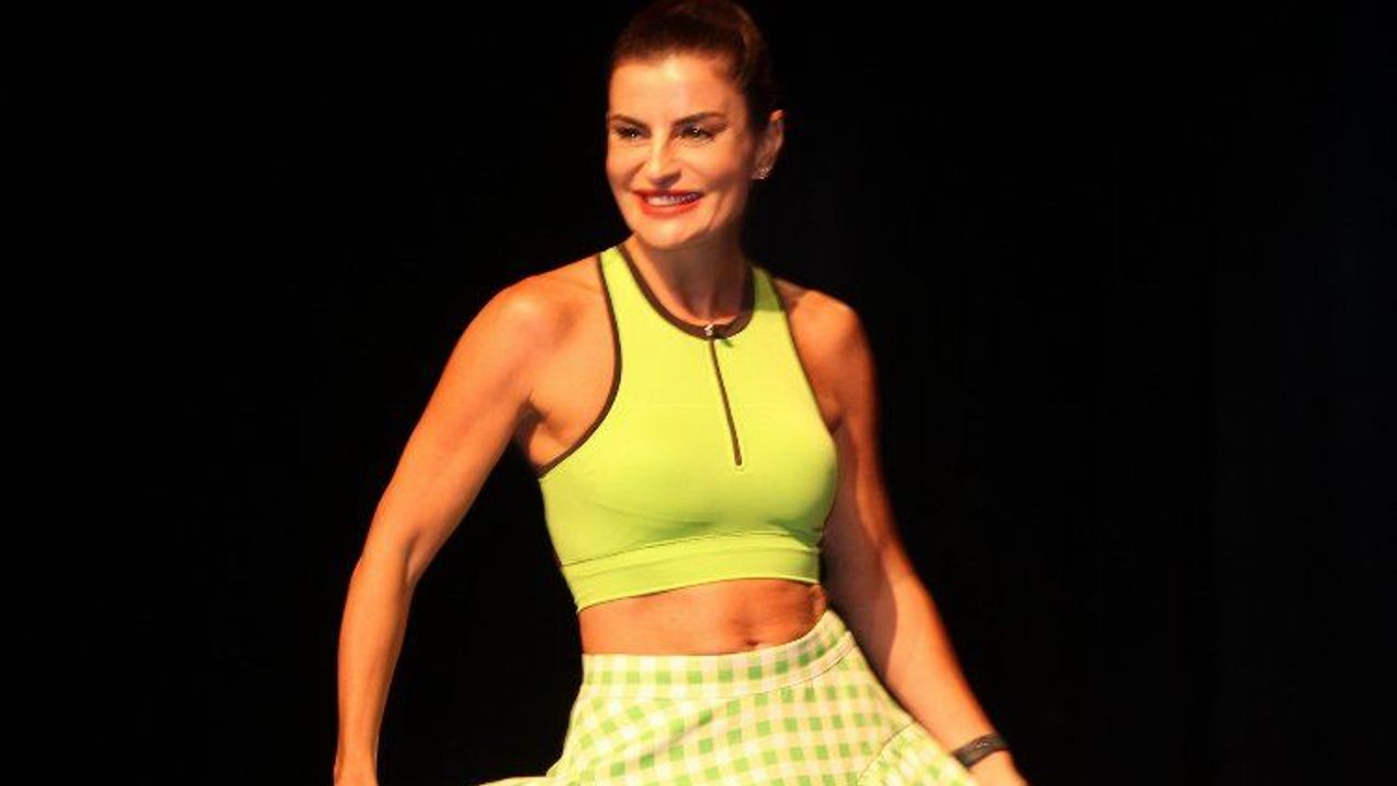 Mutluluk dansı ederek neşeli tavırlarıyla başladığı kabarık etekli gösterisinde spor yaptıracağı bölüme geçerken bir anda seyirciyi şaşırtarak sahnede etekten spora tayta geçti. Fit görünümüyle dikkat çeken Vahapoğlu, gösterisinin geri kalanını tayt ve atletle tamamladı.