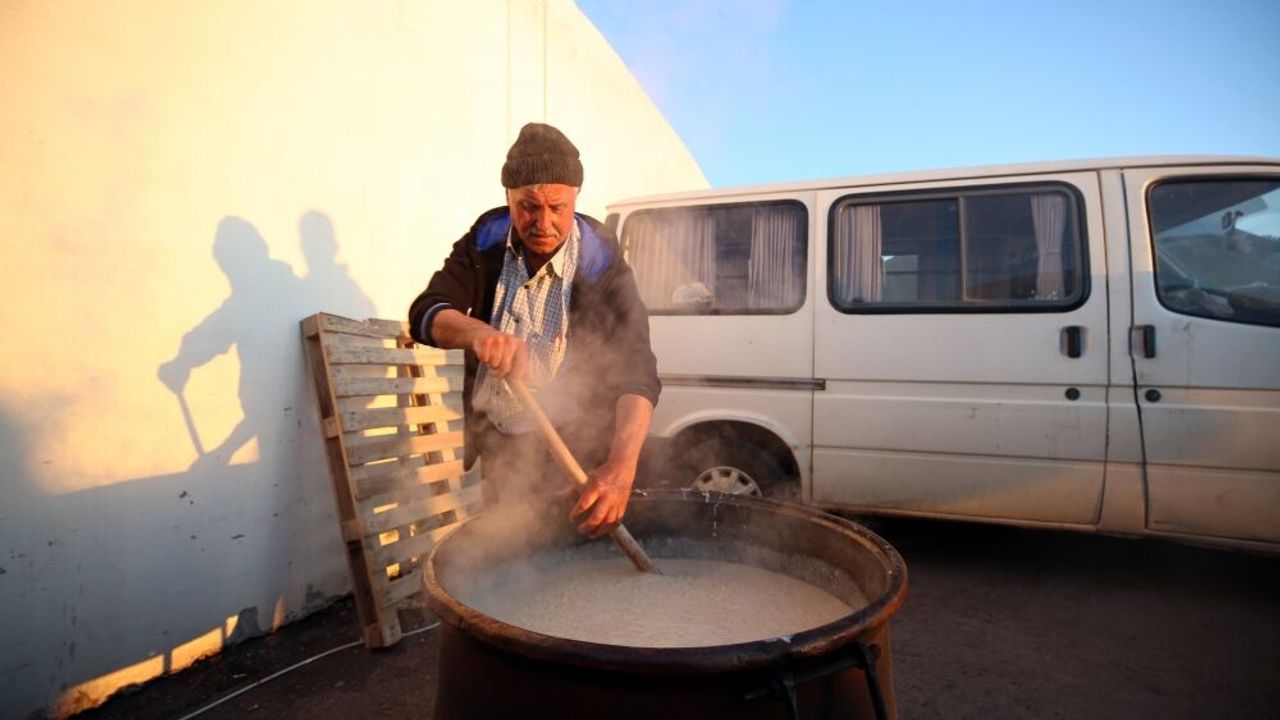 Ramazan dolayısıyla meslektaşları ve depremzedelere yemek yapmak için kolları sıvayan sağlıkçılar, Ege'nin yöresel tatları "keşkek" yemeği ve "zerde" tatlısı pişirdi.