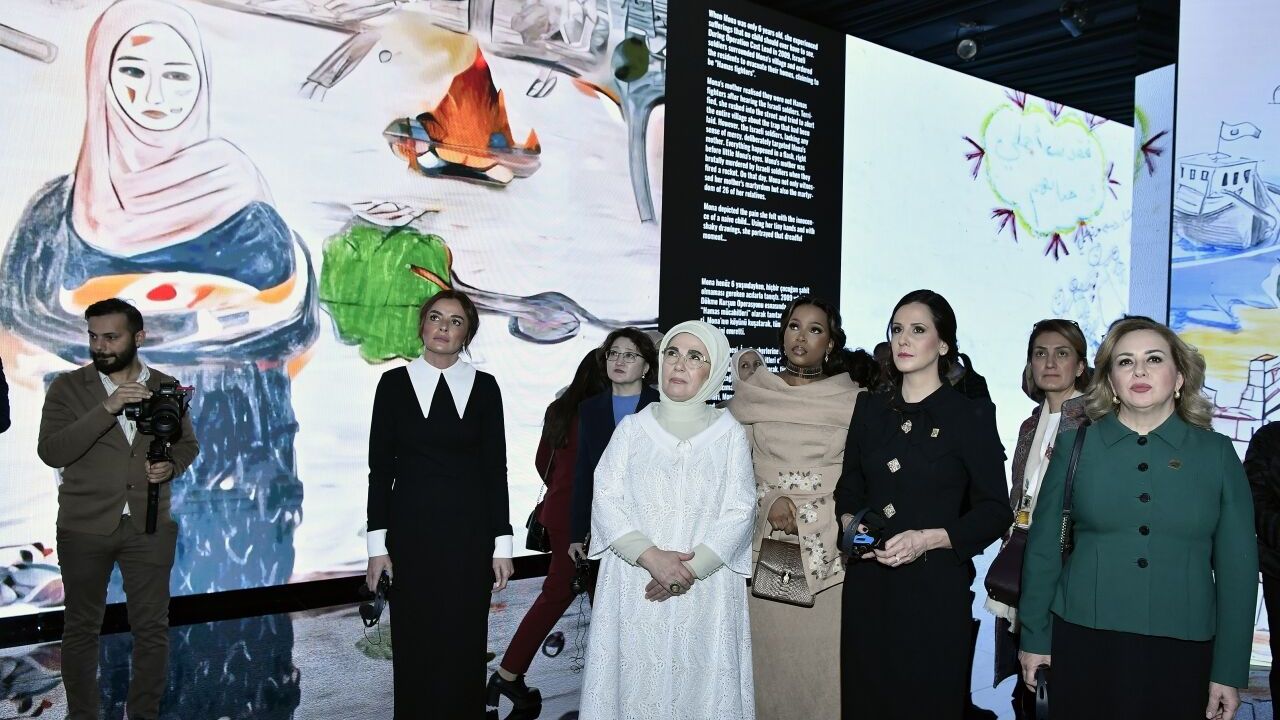 Geçen kasım ayında, 20 lider eşi ve ülke temsilcisiyle "Filistin için Tek Yürek Zirvesi" kapsamında aynı amaçla bir araya geldiklerini anımsatan Erdoğan, "Davetime icabet ederek gelen, mazlumların haklı davası için güçlü bir duruş sergileyen kız kardeşlerime, buradan bir kez daha şükranlarımı sunuyorum. Sözlerime son vermeden, başta Dışişleri Bakanlığımız olmak üzere, bu kıymetli organizasyonda emeği geçen herkesi kutluyor, oturumumuza katılımlarınız için hepinize bir kez daha teşekkür ediyorum. Savaşların, yerini kapsayıcı bir barış düzenine bıraktığı, her şeyden önemlisi, çocukların ölüme terk edilmediği, adil bir dünya diliyorum." dedi.
