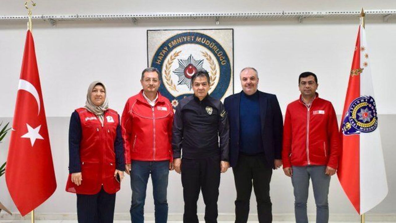 Hatay Emniyet Müdürlüğü’nde anlamlı bir ziyaret gerçekleşti. İl Emniyet Müdürü Rüştü Yılmaz, Kızılay Hatay İl Başkanı Hüseyin Kimyonoğlu ve beraberindeki heyeti makamında ağırladı.