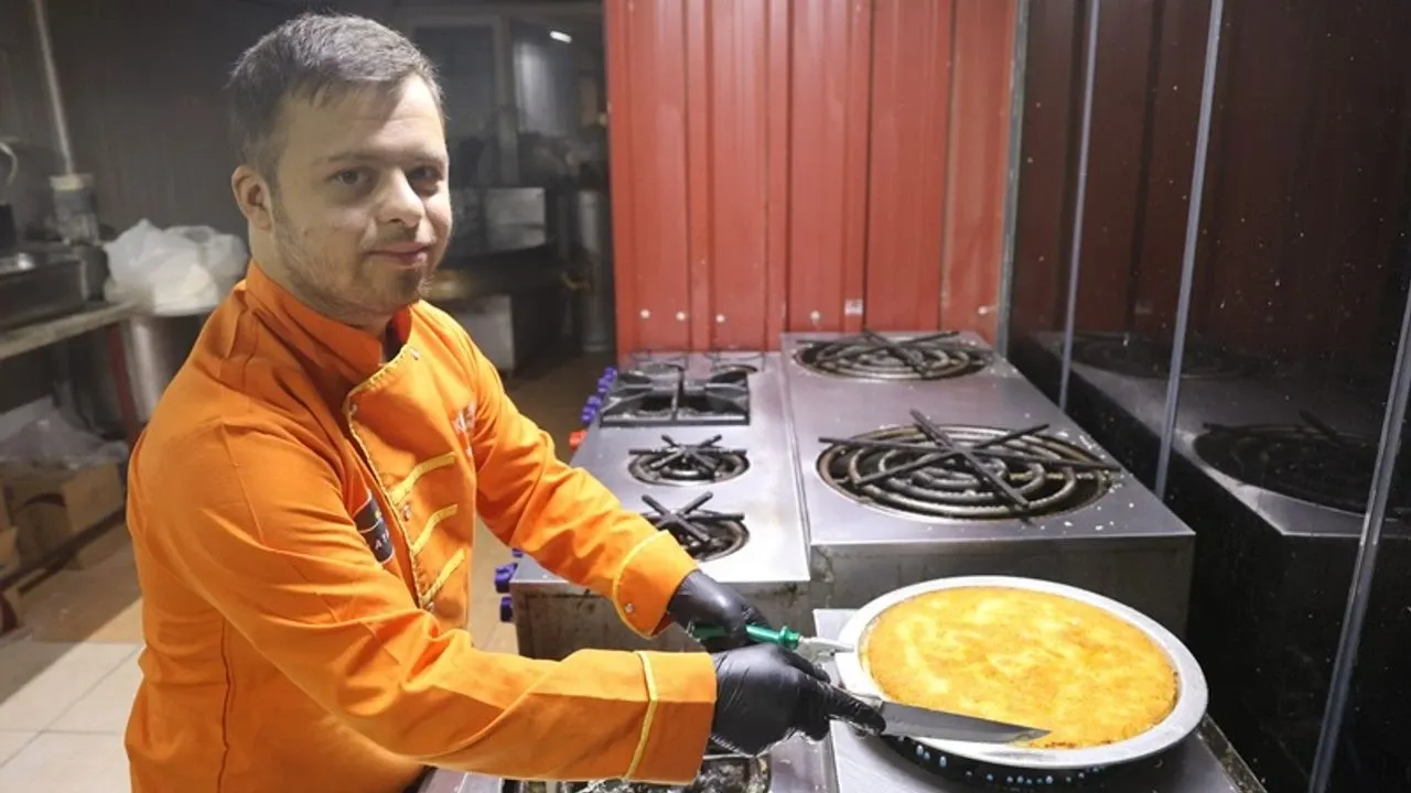 Down sendromlu Mehmet'in yaklaşık 6 aydır yanında çıraklık yaptığını söyleyen künefe ustası Müslüm Günal, "Ben yaklaşık 20 yıldır künefe ustasıyım ve 15 yıldır ise işletme sahibiyim. Künefe yapmayı aileden öğrendim. Künefenin içinde; kadayıf, yöreye ait tuzsuz peynir ve tereyağı kullanılır. Künefe, dünyanın en iyi tatlısı seçildi. Bu da bizim için gurur vericiydi, dünyanın en iyi tatlısı künefedir. Mehmet 21 yaşında down sendromludur ve aynı zamanda benim köylümdür. Her gün künefe yemeye yanıma gelirdi. Mehmet'i işe alarak künefe ustası yapmaya karar verdik. Mehmet, yaklaşık 6 aydır künefe yapmayı öğreniyor ve kendisinin özel müşterileri var. Hatay, gastronomi şehridir. Künefemiz zaten coğrafi tescil aldı. Künefe, 2025 yılının en iyi tatlısı seçildi. Bütün insanları Hatay'a gelip künefe yemeye davet ediyoruz. Mehmet ustanın ellerinden dünyanın en iyi tatlısını tatmalarını istiyoruz" ifadelerini kullandı.