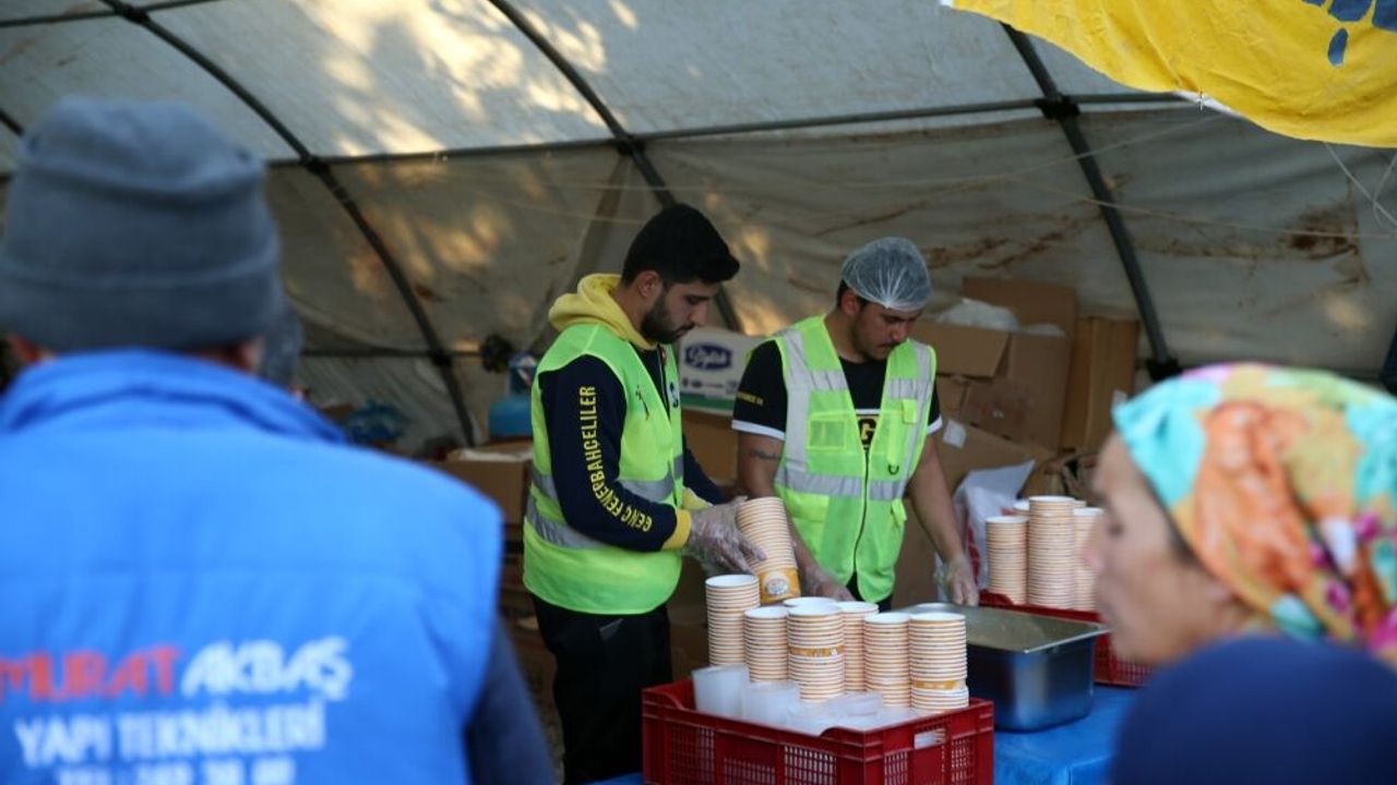 Burada ilk etapta çadırların kurulmasına yardım eden Yıldız, şimdi ise depremzedeler için sahur ve iftar olmak üzere günde iki öğün yemek pişiriyor.
