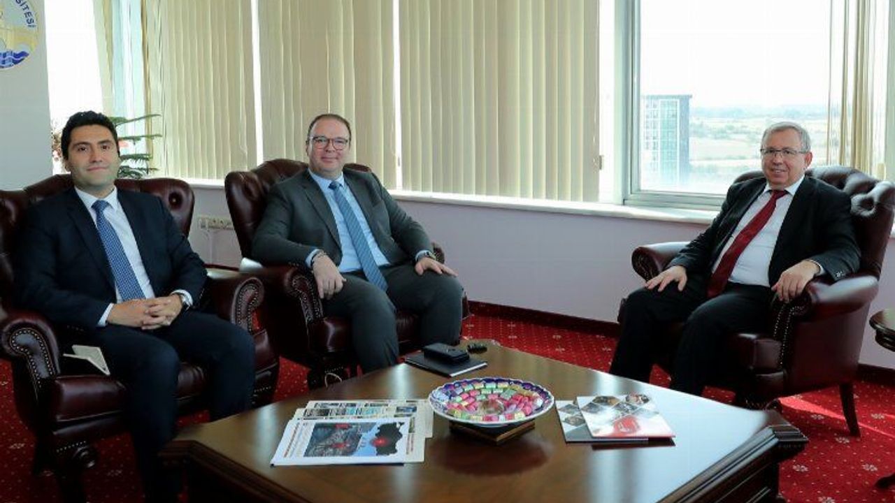 Türkiye Cumhuriyeti Gümülcine Başkonsolosu Aykut Ünal, Trakya Üniversitesi'ne nezaket ziyareti gerçekleştirdi.Erdoğan DEMİR / EDİRNE (İGFA) - Gümülcine Başkonsolosu Aykut Ünal’dan Trakya Üniversitesi Rektörü Erhan Tabakoğlu’na yapılan ziyarette, kurumlar arası iş birliği ve ortaklaşa gerçekleştirilecek faaliyetler hakkında görüş alışverişinde bulunuldu.