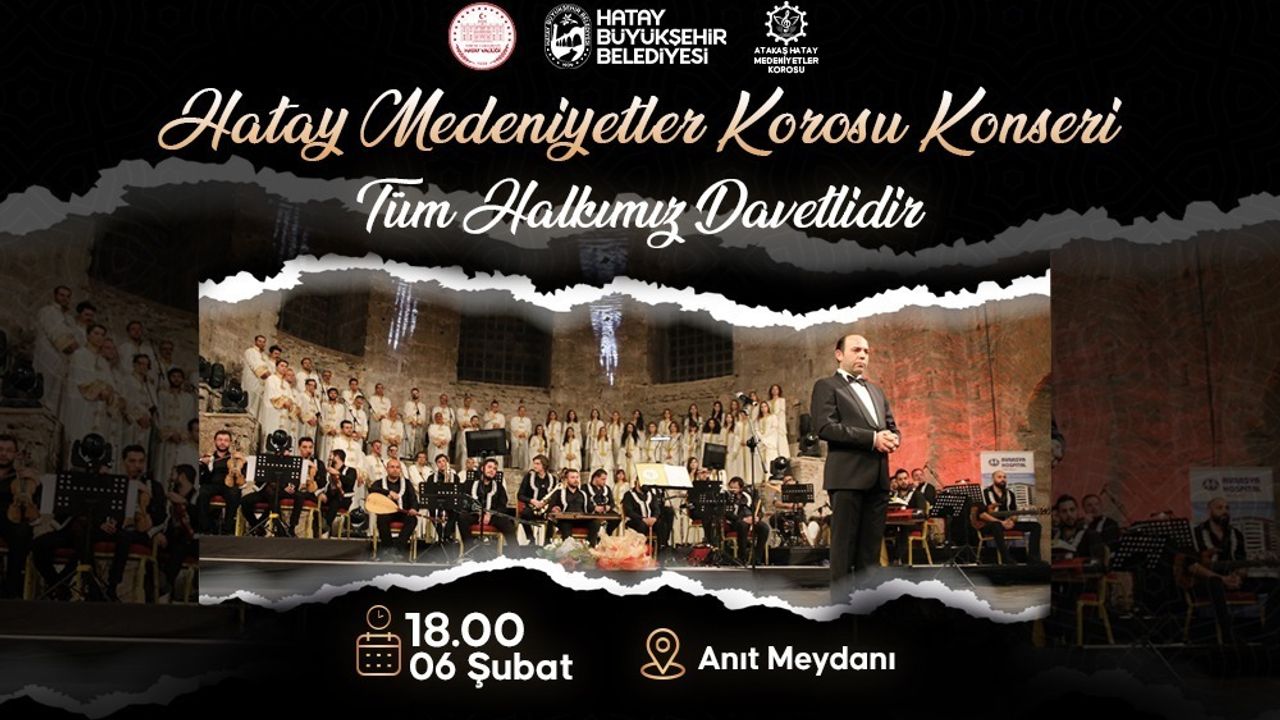Hatay Valiliği, Hatay Büyükşehir Belediyesi (HBB), Hatay Medeniyetler Korosu iş birliğiyle 6 Şubat 2023’te yaşanan depremlerin üçüncü yıl dönümünde, hayatını kaybeden vatandaşları anmak amacıyla özel bir konser düzenleyecek.