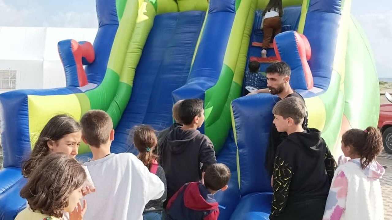 Ekipler, belirlenen alanda salıncak, şişme kaydırak ve tahterevalli kurdu. Oyun araç ve gereçleriyle de donatılan parka gelen çocuklar, aileleriyle keyifli vakit geçirdi.