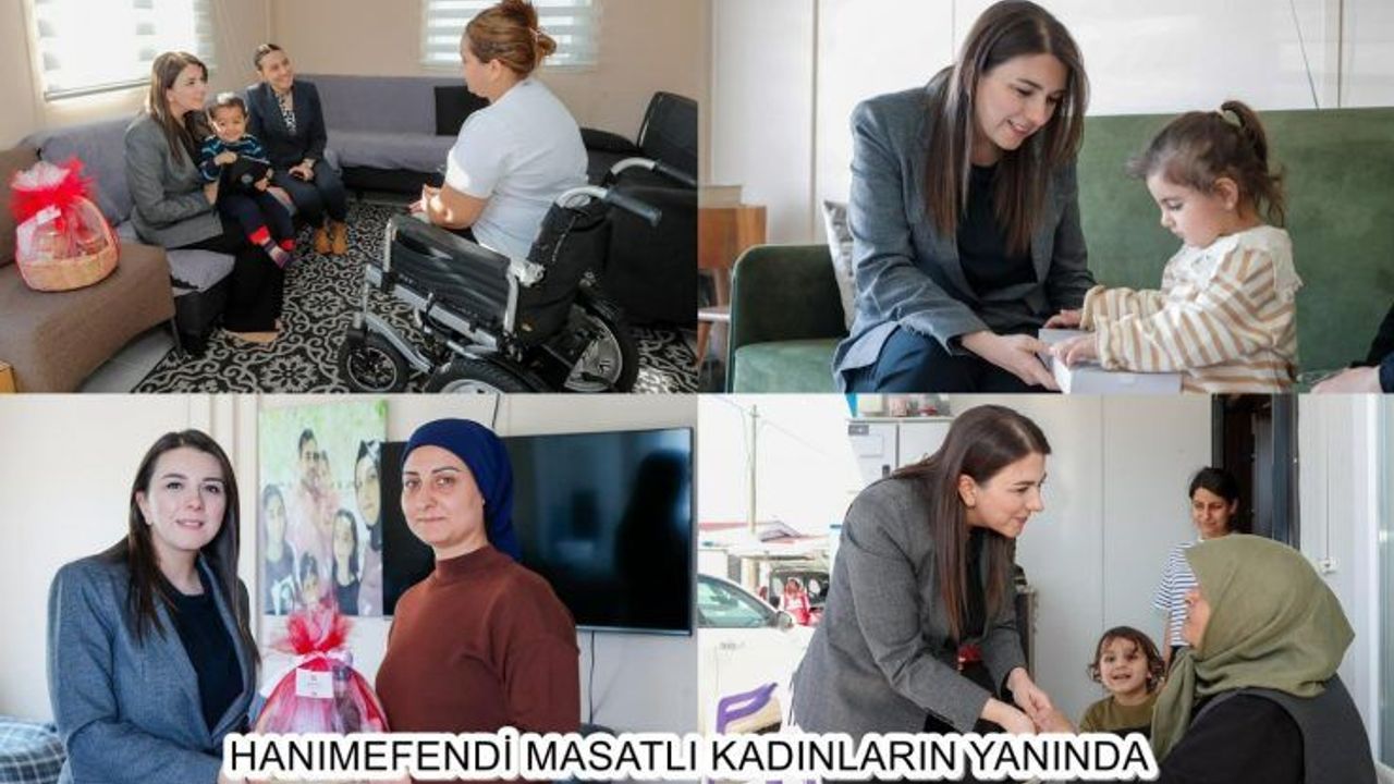 Hatay Valisi Mustafa Masatlı’nın eşleri Esra Masatlı Hanımefendi, 8 Mart Dünya Kadınlar Günü nedeniyle Ciner 1 ve Ciner 2 Konteyner Kentlerinde ikamet eden kadınları ziyaret etti.