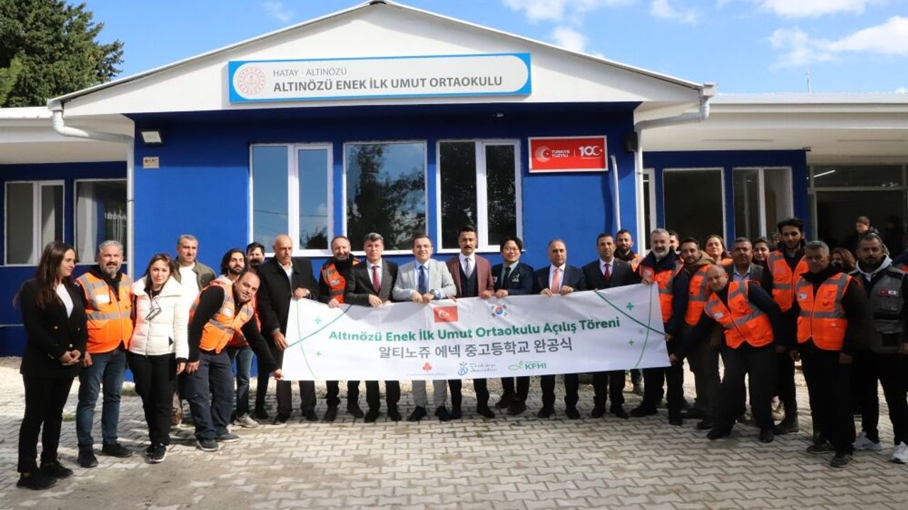 HATAY (AA) - Depremlerden etkilenen Hatay'ın Altunözü ilçesinde, İlk Umut Derneği ve Güney Koreli bağışçıların katkısıyla yaptırılan Altınözü Enek İlk Umut Ortaokulu törenle açıldı.