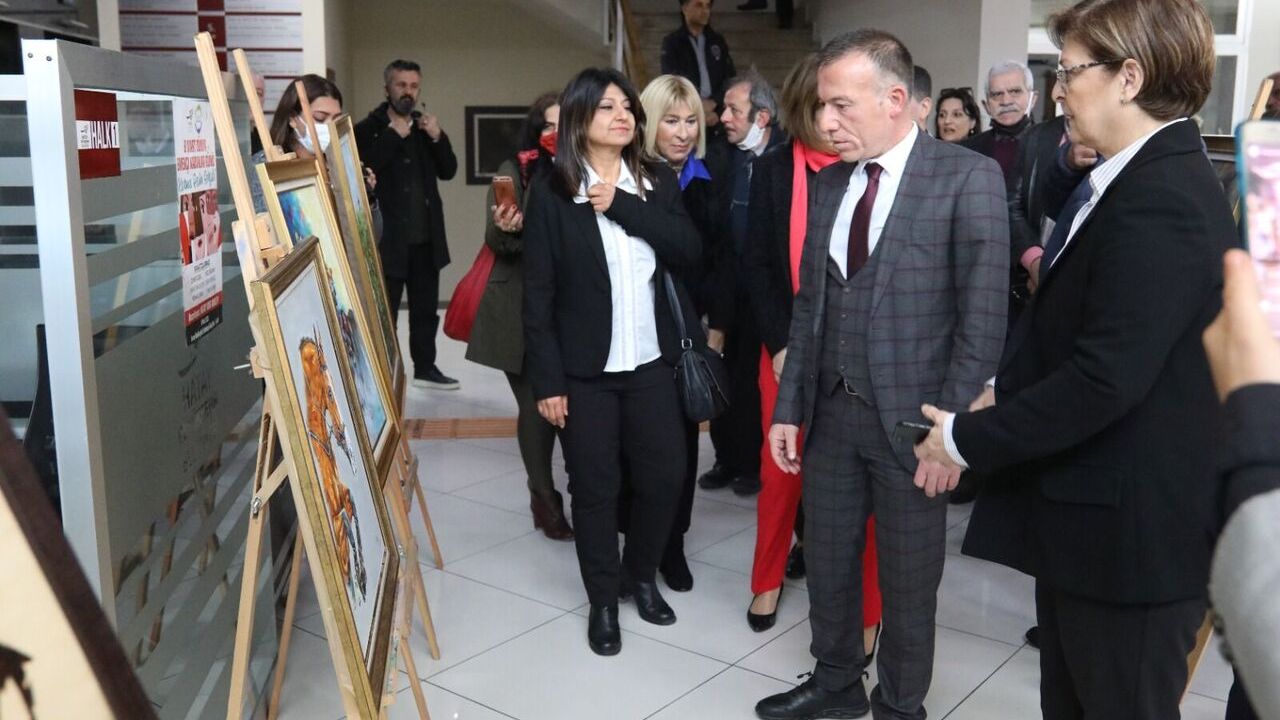 Hataylı resim ve yakma sanatçılarının hazırladığı birbirinden kıymetli eserler HBB binasının girişindeki yerini aldı.
