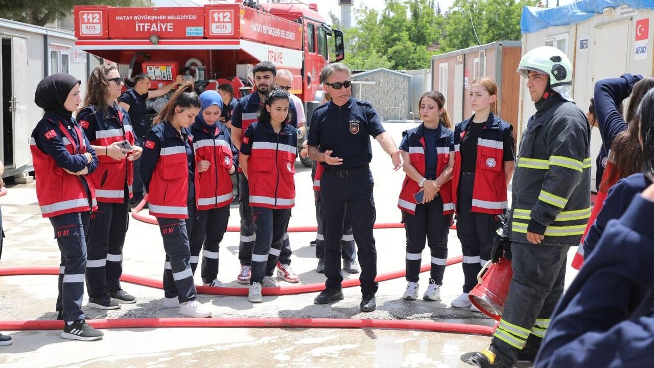 Eğitimler kapsamında İtfaiye ekipleri, Mustafa Kemal Üniversitesi (HMKÜ) öğrencilerine yönelik yangın eğitimi verdi.