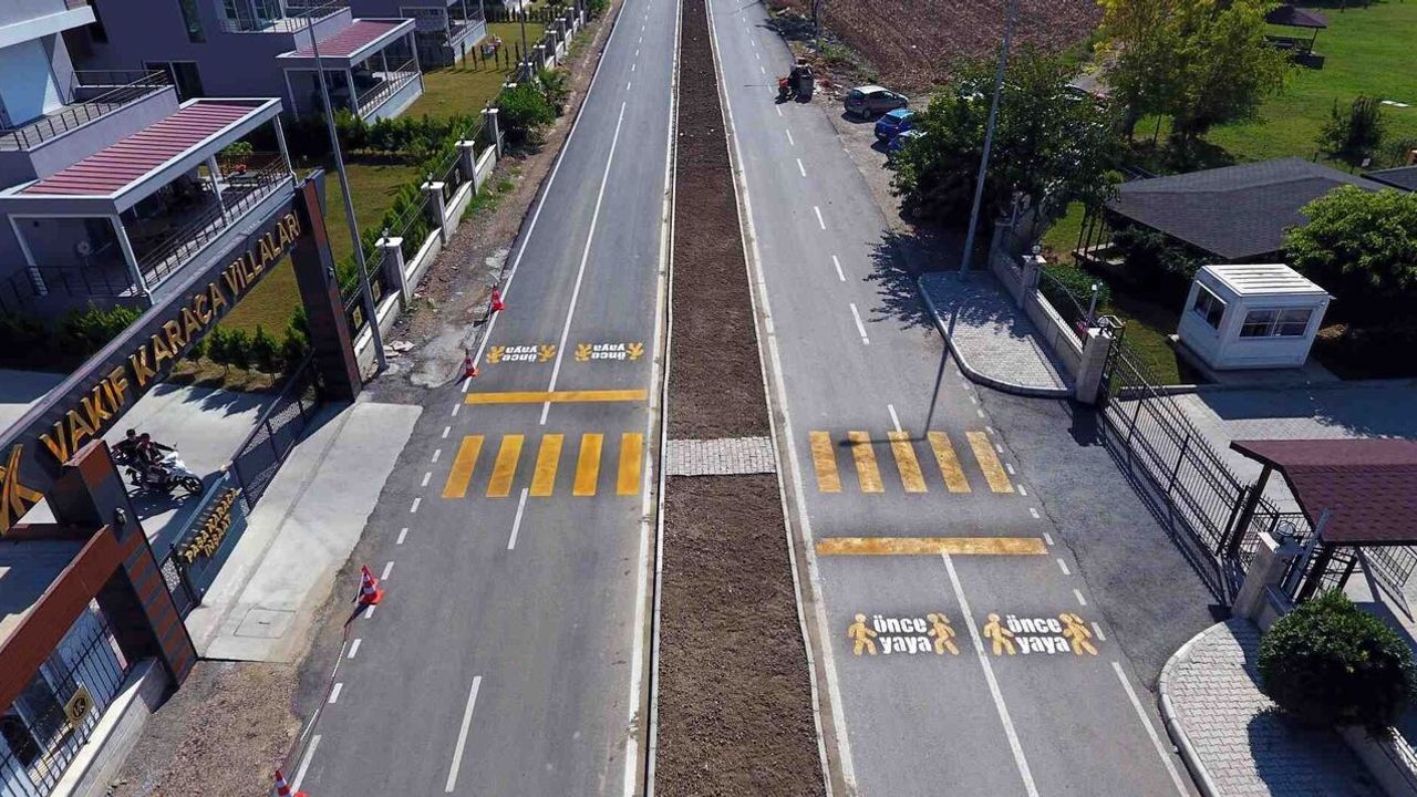 Söz konusu yolda bulunan okulun önüne yaya geçidi çizgilerini de çeken ekipler, öğrencilerin okul giriş ve çıkışındaki güvenli ulaşımına katkı sunmuş oldu.