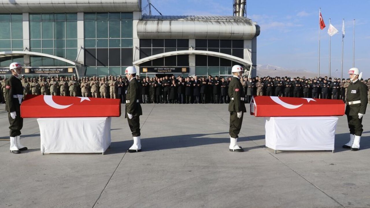 Şehit Sözleşmeli Ulaştırma Er Ali Arslan ile İstihkam Uzman Çavuş Muammer Ay'ın Türk bayrağına sarılı naaşları, Ağrı Eğitim ve Araştırma Hastanesi morgundan alınarak Ahmedi Hani Havalimanına getirildi.