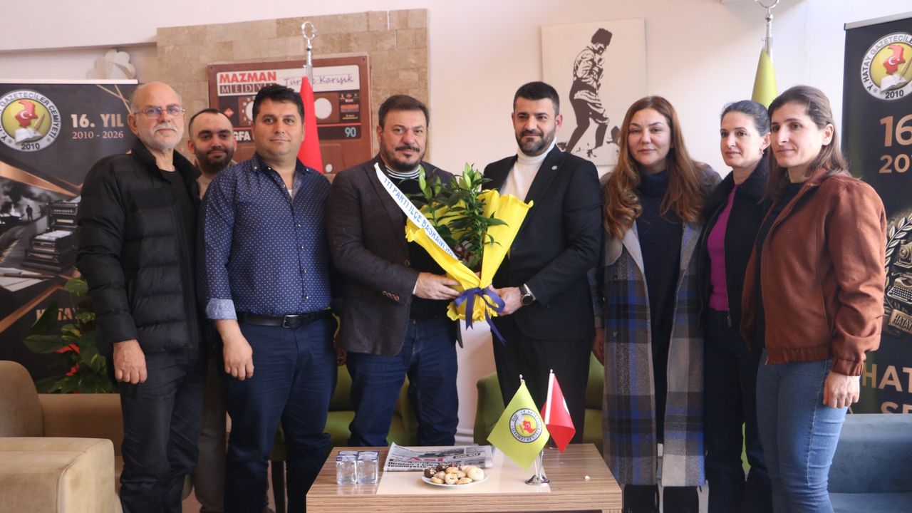 İYİ Parti Samandağ İlçe Başkanı Ali Eryılmaz ve yönetim kurulu üyeleri, Kadın ve Aile Politikalarından Sorumlu İl Başkan Yardımcısı Zerrin Ceritoğlu Albayrak ile İl Başkan Yardımcısı Zekiye Şahutoğulları, Hatay Gazeteciler Cemiyetini ziyaret etti.