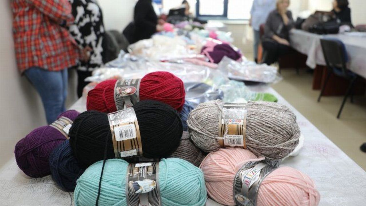 İZMEK’teki kadın üreticiler, yapacakları el emeği ürünlerin malzemesini kendileri alarak deprem bölgesindeki vatandaşlara atkı, bere gibi kışlık ürünler üretiyorlar. Çalışmaları kısa sürede tamamlayacak kursiyerler, yaptıkları ürünleri deprem bölgesine gönderecek.