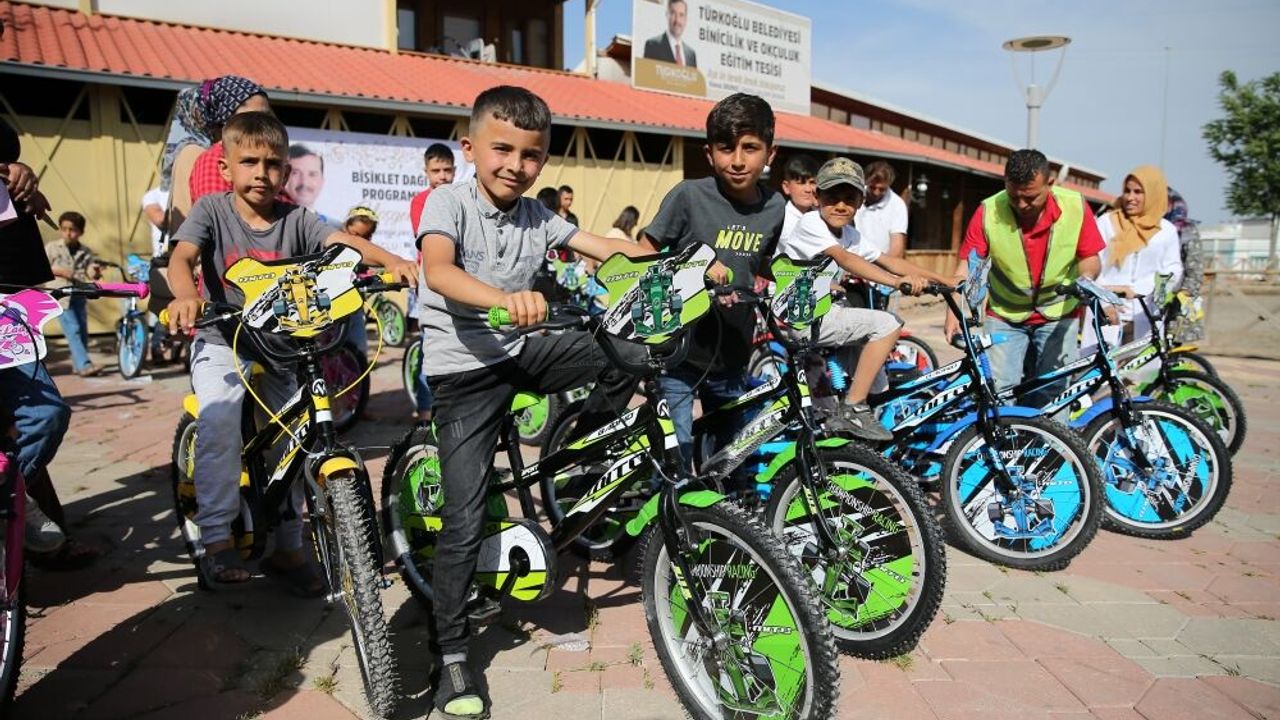 "Asrın felaketi" olarak nitelenen Kahramanmaraş merkezli depremlerden etkilenen çocukların motivasyonun arttırılması amacıyla temin edilen 2 bin 400 bisikletten 56'sı Türkoğlu At Çifliği'nde düzenlenen törenle afetzede çocuklara dağıtıldı.