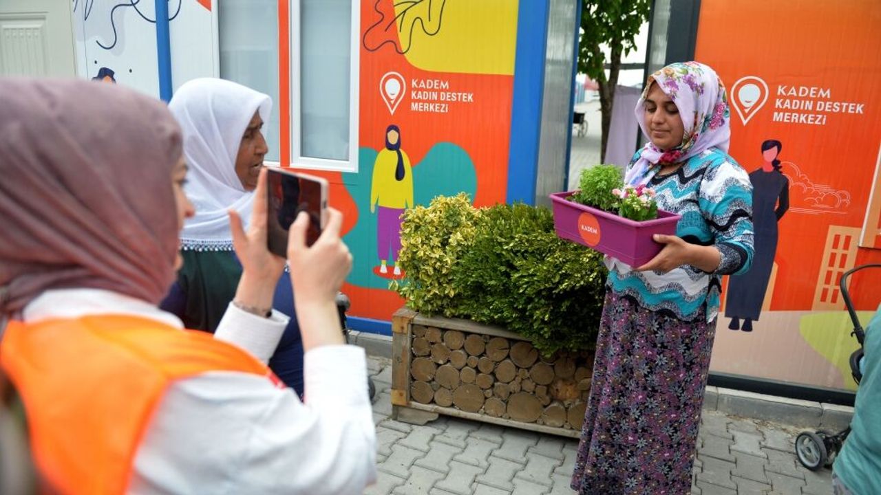 Deprem bölgesindeki kadınların yaşadıkları psikolojik travmaları atlatmaları amacıyla yapılan çalışma kapsamında yaklaşık 4 bin çiçek fidesi toprakla buluşturuldu.