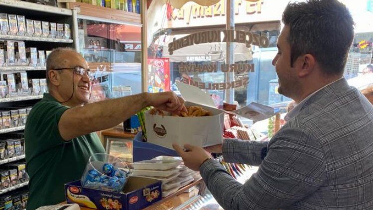 CHP Keşan İlçe Başkanlığı Mevlid Kandili dolayısıyla çarşı merkezdeki esnafa kandil simidi dağıtarak esnafın kandillerini kutladı.Erdoğan DEMİR / EDİRNE (İGFA) - Ziyarette CHP Keşan İlçe Başkanı Anıl Çakır, İl Yönetim Kurulu Üyeleri, İl Disiplin Kurulu üyeleri, İlçe Yönetim Kurulu üyeleri esnafa kandil simidi dağıttı.