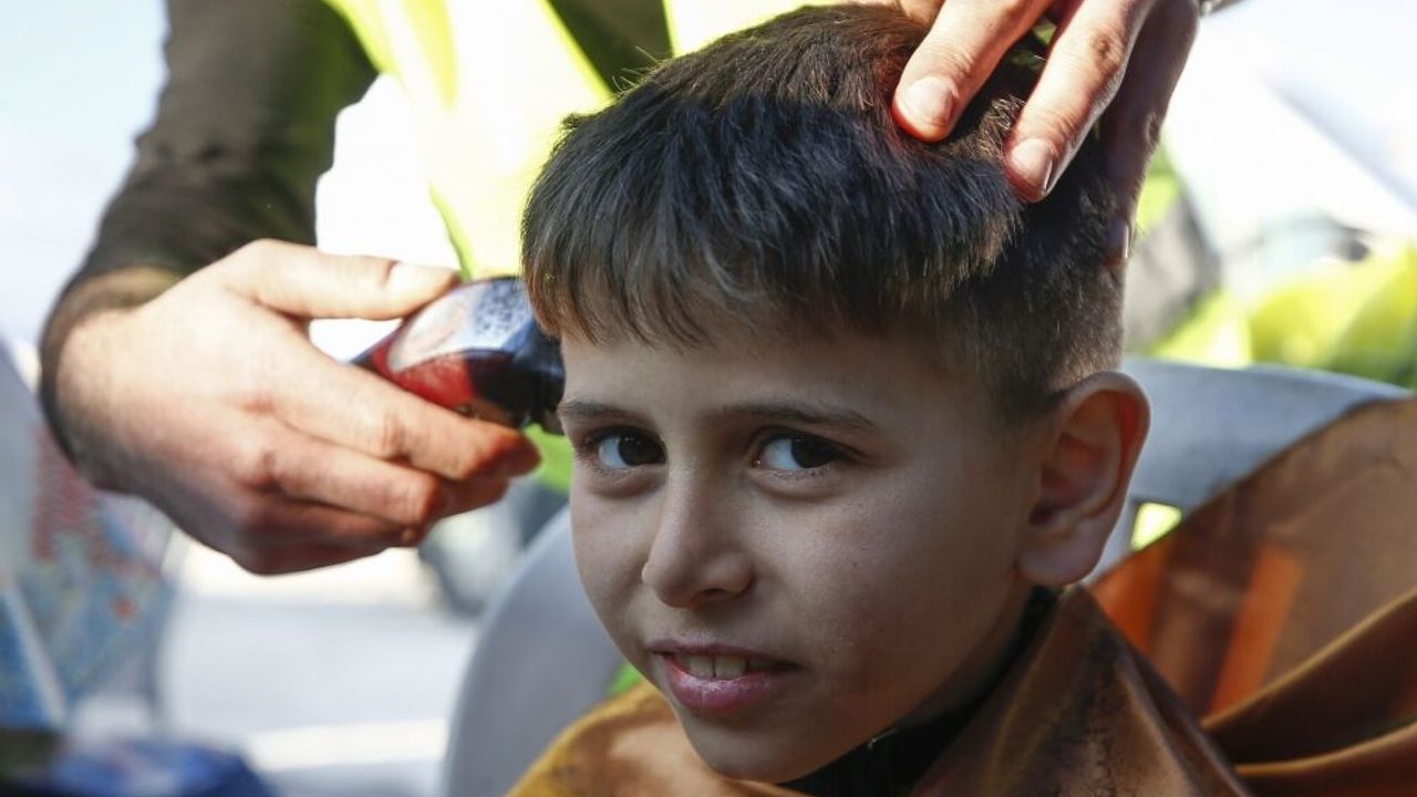 HATAY (AA) - SÜLEYMAN ELÇİN - Kocaeli'den Hatay'a gelen gönüllü berber ve kuaförler, geçici barınma alanlarındaki depremzedeleri tıraş edip saç bakımı yaptı.