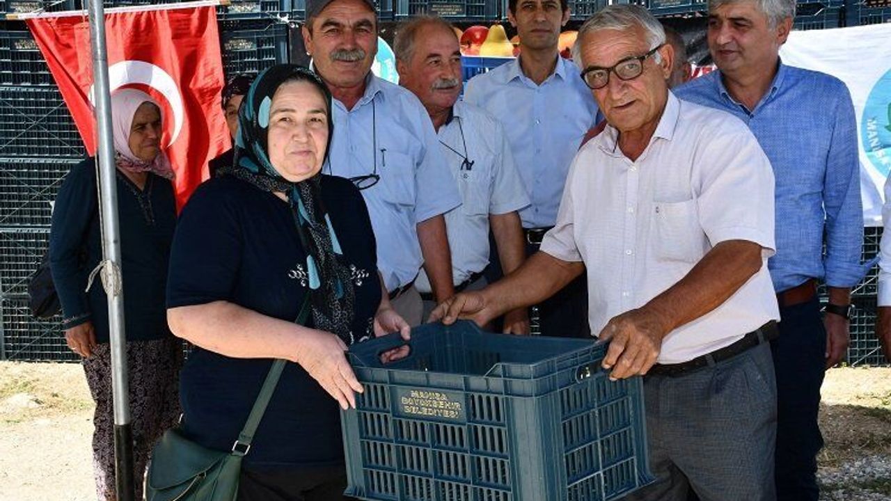 Manisa Büyükşehir Belediyesi, ‘Meyve Üreticilerine 120 Bin Kasa Desteği’ projesi kapsamında Selendili bin 50 üreticiye 10 bin 500 adet kasa desteğinde bulundu.MANİSA (İGFA) - Üretken belediyecilik anlayışı çerçevesinde, tarıma ve kırsal kalkınmaya desteklerini aralıksız sürdüren Manisa Büyükşehir Belediyesi, hayata geçirdiği Meyve Üreticilerine 120 Bin Kasa Desteği’ projesi kapsamında Selendili üreticilere 10 bin 500 adet kasa desteğinde bulundu.