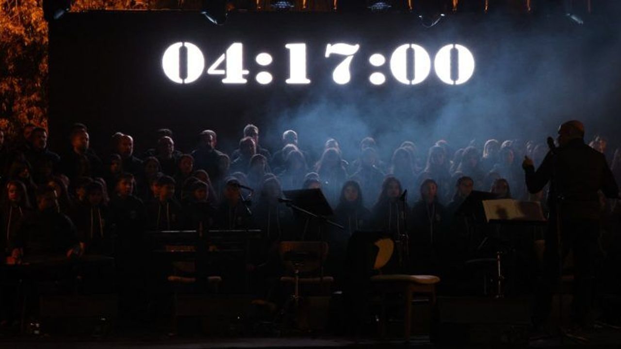 Hatay Medeniyetler Korosu ve Çocuk Korosu 6 Şubat depremlerinin ikinci yıl dönümünde, Antakya Anıt Alanı’nda sahne aldı.Hatay Medeniyetler Korosu ve Çocuk Korosu 6 Şubat depremlerinin ikinci yıl dönümünde, Antakya Anıt Alanı’nda sahne aldı.