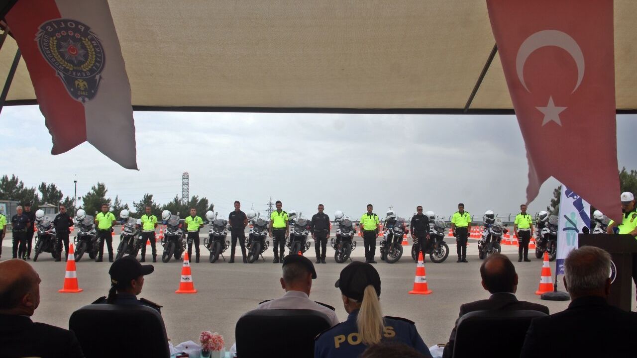 MERSİN (AA) - Mersin Emniyet Müdürlüğünce düzenlenen eğitimi başarıyla tamamlayan motosikletli trafik polis timlerine sertifikaları verildi.