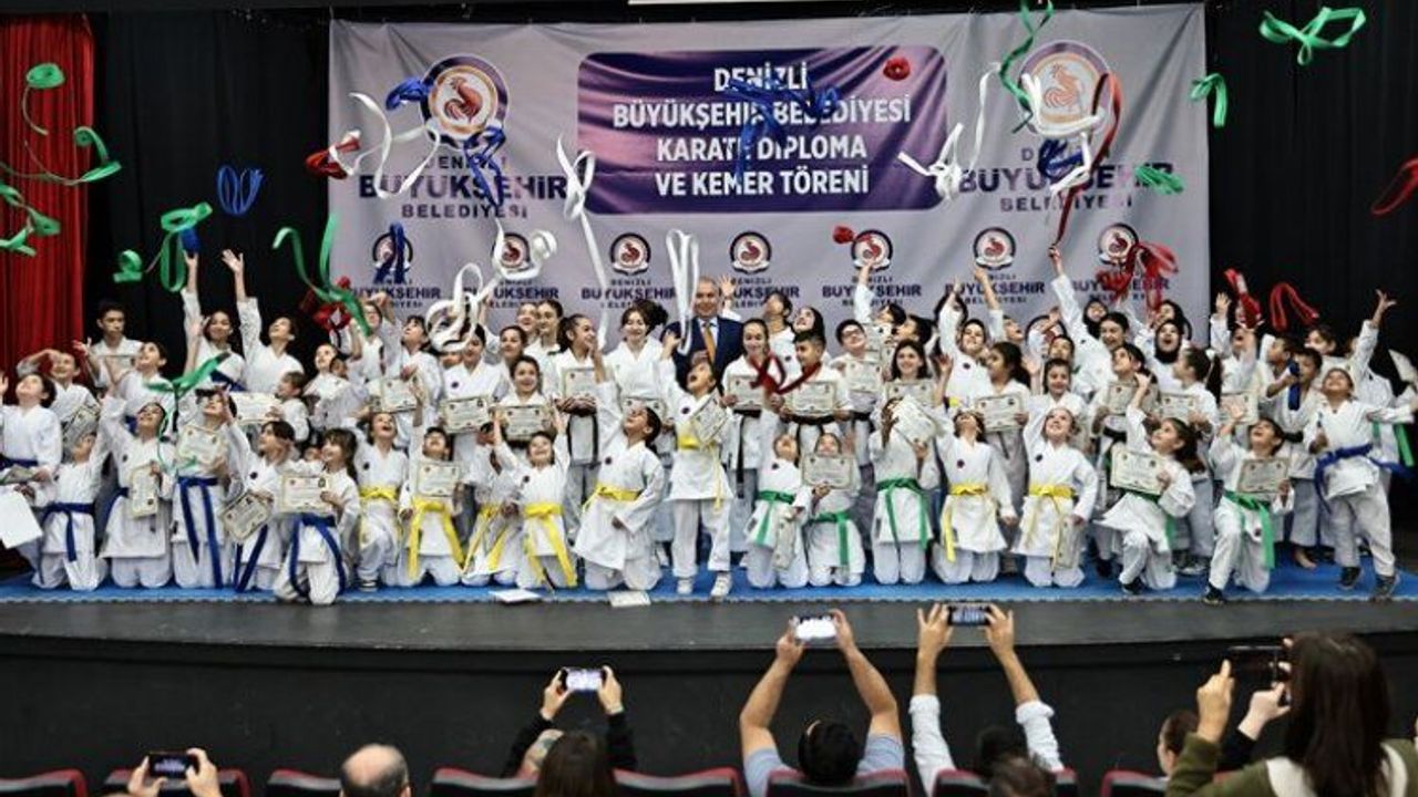 Başkan Osman Zolan konuşmasına Denizli Büyükşehir Belediyesi spor kurslarına çocuklarını gönderen anne-babalara teşekkür ederek başladı. Spor yapmanın çocuklara kazandırdığı değerlerden bahseden Başkan Zolan, “Spor, çocuklarımızı, gençlerimizi geleceğe hazırlamak açısından çok kıymetli” dedi. Denizli Büyükşehir Belediyesi olarak her türlü imkanlarını çocuklar ve gençler için seferber ettiklerini vurgulayan Başkan Zolan,"Çocuklarımız, gençlerimiz inşallah bizden daha başarılı olacak. Şehrimizi, ülkemizi daha ileriye götürecekler, bundan hiç kuşkumuz yok” dedi. Başkan Zolan, konuşmasını şöyle sürdürdü: “Çocuklarınızı kendi çocuğumuz, evladımız, gözbebeğimiz gibi görüyoruz. Onların başarıları, bu sporu yapıyor olmaları bizi mutlu ediyor. İnşallah yolları açık olsun, Allah gönüllerinden geçeni nasip etsin" diye konuştu. Kursiyerlerin gösterileriyle renk kattığı programda Başkan Osman Zolan, karate kursunda başarılı olan sporculara diploma ve kemerlerini takdim etti.