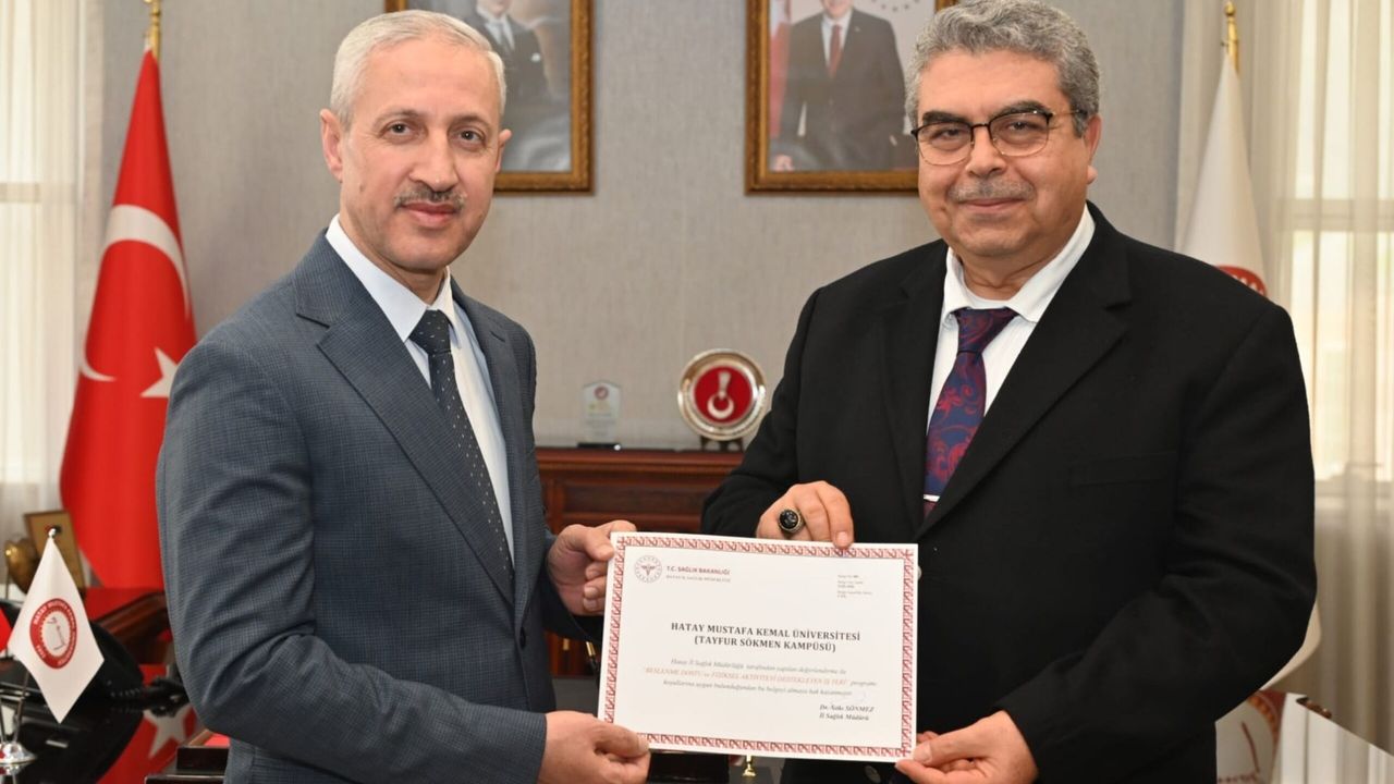 Sağlıklı, güvenli ve üretken bir iş yeri ortamı oluşturmayı amaçlayan program çerçevesinde düzenlenen belge, 24 Şubat 2026 tarihinde Dr. Sıtkı Sönmez tarafından, MKÜ Rektörü Prof. Dr. Veysel Eren’e takdim edildi.