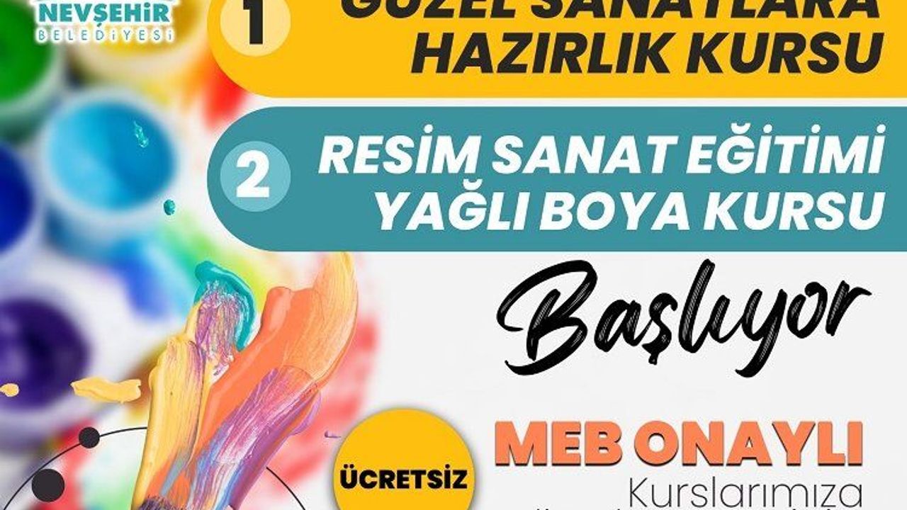 Nevşehir Belediyesi Güzel Sanatlar Merkezi’nde, Güzel Sanatlar Fakültesi ve Güzel Sanatlar Lisesi’ne hazırlanan gençler ve resim sanatına ilgi duyanlar için açılacak olan Güzel Sanatlara Hazırlık Kursu ve Resim Sanat Eğitimi Yağlı Boya Kursu için kayıtlar başladı.Mehmet UZEL (NEVŞEHİR İGFA)