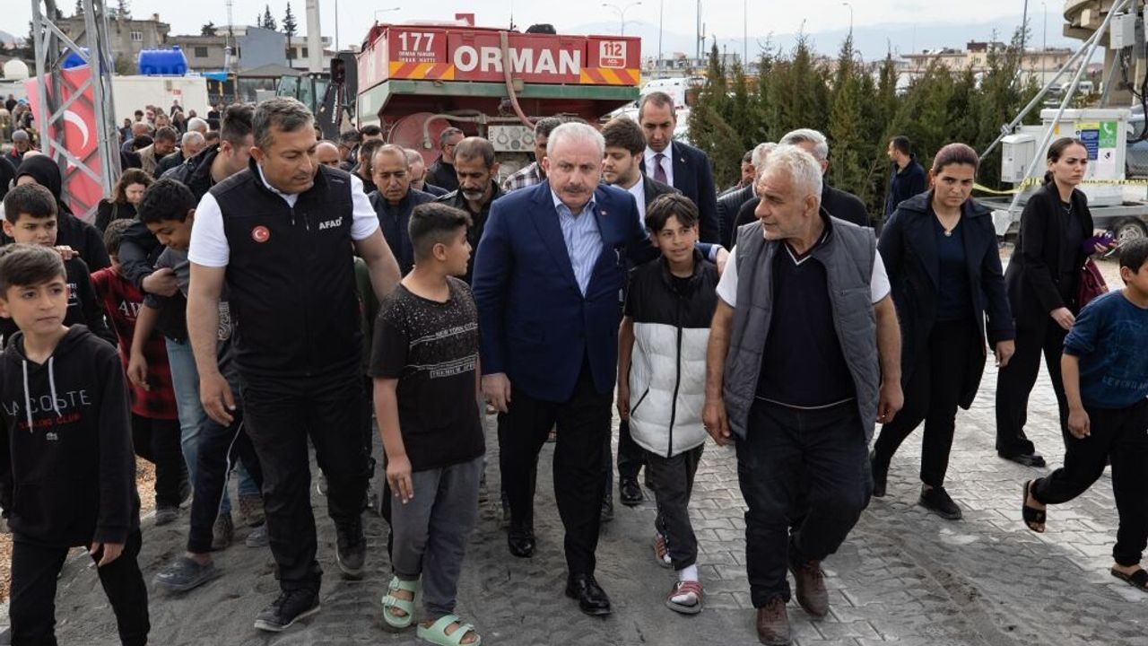 HATAY (AA) - TBMM Başkanı Mustafa Şentop, Kahramanmaraş merkezli depremlerden en fazla etkilenen illerden Hatay'da çadır kentte yaşayan afetzedelere ziyarette bulundu.
