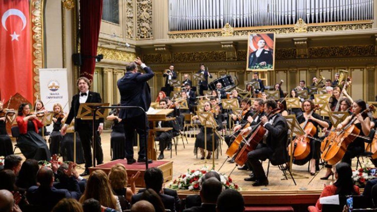 Trakya Üniversitesi Devlet Konservatuvarı Balkan Senfoni Orkestrası, T.C. Bükreş Büyükelçiliği tarafından düzenlenen Cumhuriyetin 100. yılı etkinlikleri kapsamında Bükreş’te muhteşem bir konsere imza attı.Erdoğan DEMİR / EDİRNE (İGFA) - Bükreş Büyükelçisi Özgür Kıvanç Altan ve eşi Aslı Altan’ın ev sahipliğinde, tarihi Athenaeum Salonu’nda geçekleştirilen konsere Başbakan Yardımcısı ve İçişleri Bakanı Cătălin Predoiu, Romanya Parlamentosu Romanya Türkiye Dostluk Grubu Başkanı Nicolae Georgescu, Dışişleri Bakanlığı Devlet Sekreteri Iullan Fota, Eski Başbakan Victor Ponta, büyükelçiler, bürokratlar, Nato temsilcileri, Türk ve soydaş STK mensupları katıldı.