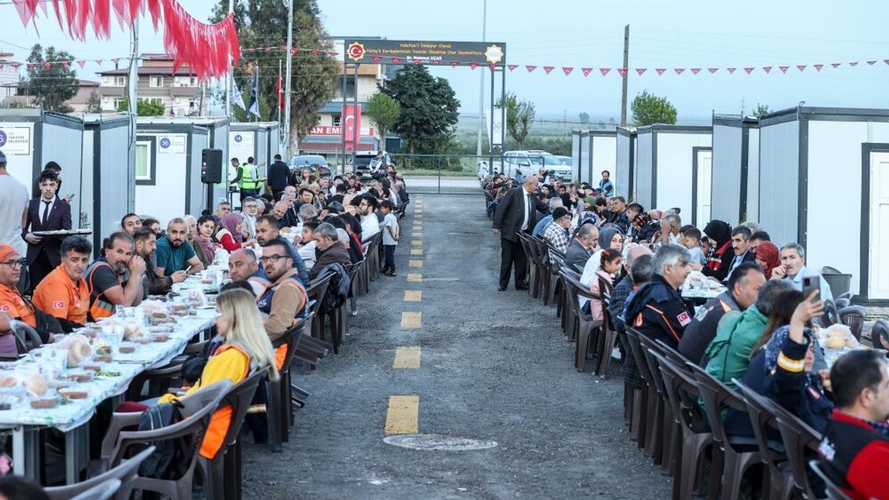 HATAY (AA) - Erzurum'un Yakutiye Belediyesince Kahramanmaraş merkezli 6 Şubat'ta meydana gelen depremlerin ardından Hatay'da kurulan "Yakutiye Konteyner Ev Mahallesi"nde depremzedeler için iftar programı düzenlendi.